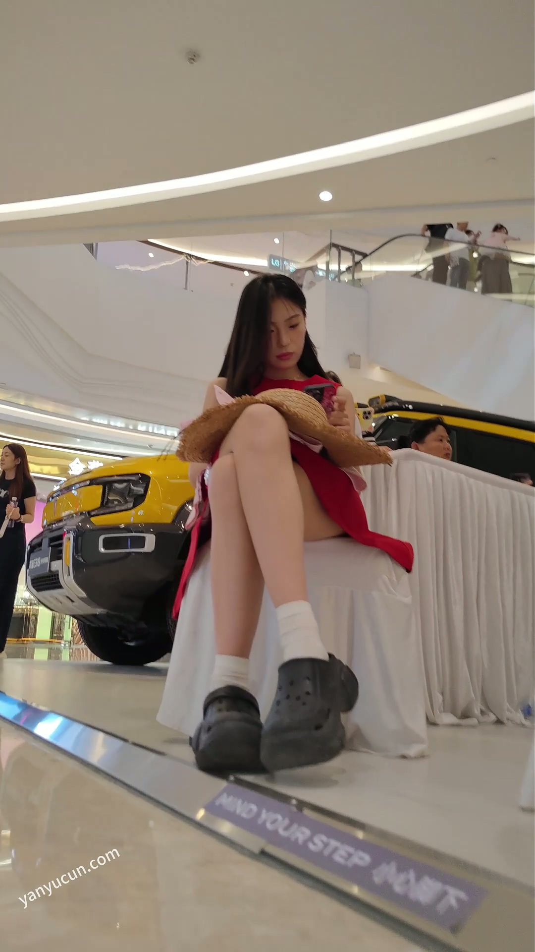 XM429红色连衣裙小姐姐一个人逛街,前后抄底白色内 429