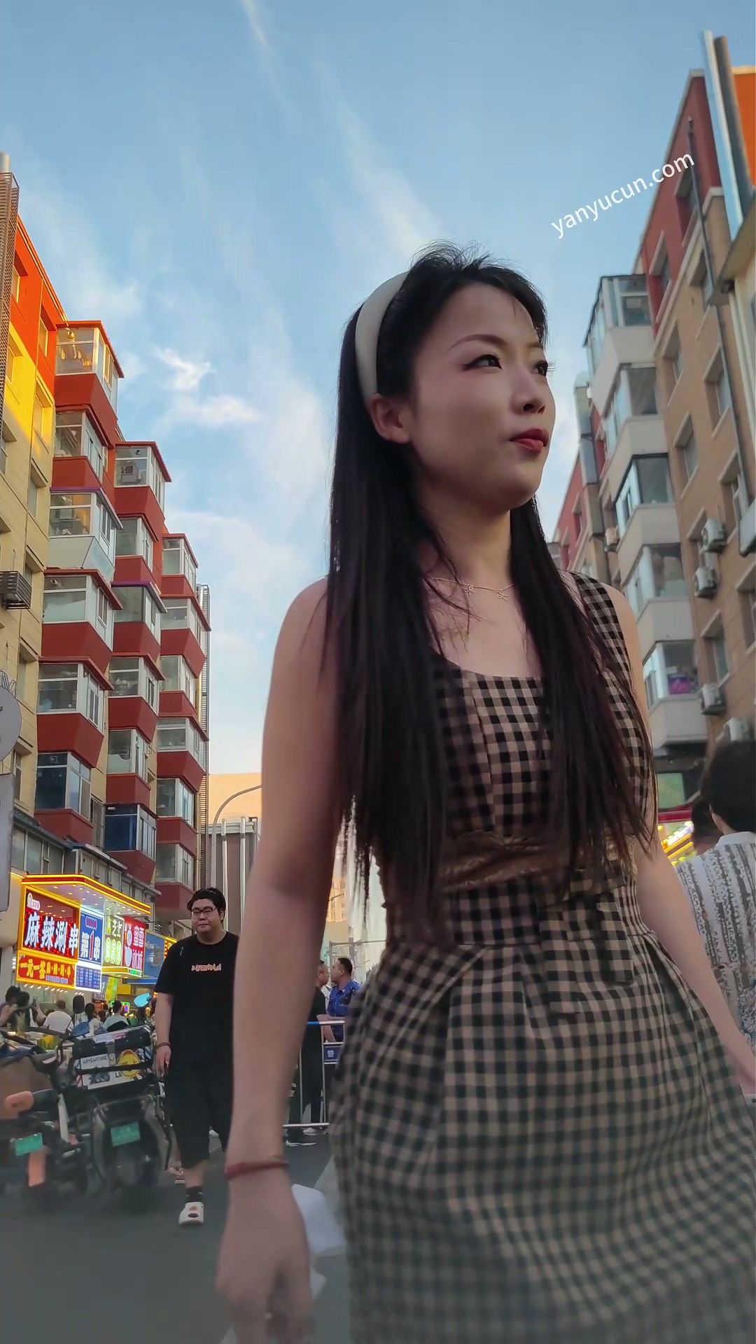 XM434格子连衣裙小姐姐和闺蜜逛夜市,白色窄内 ...