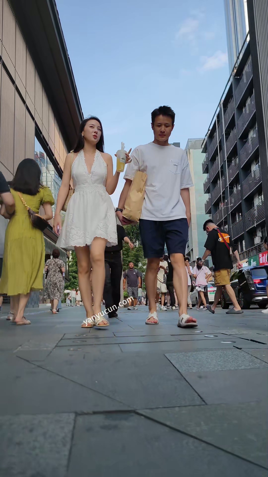 XM352白色连衣裙气质美女和老公逛街,扶梯抄底米色内内 ...