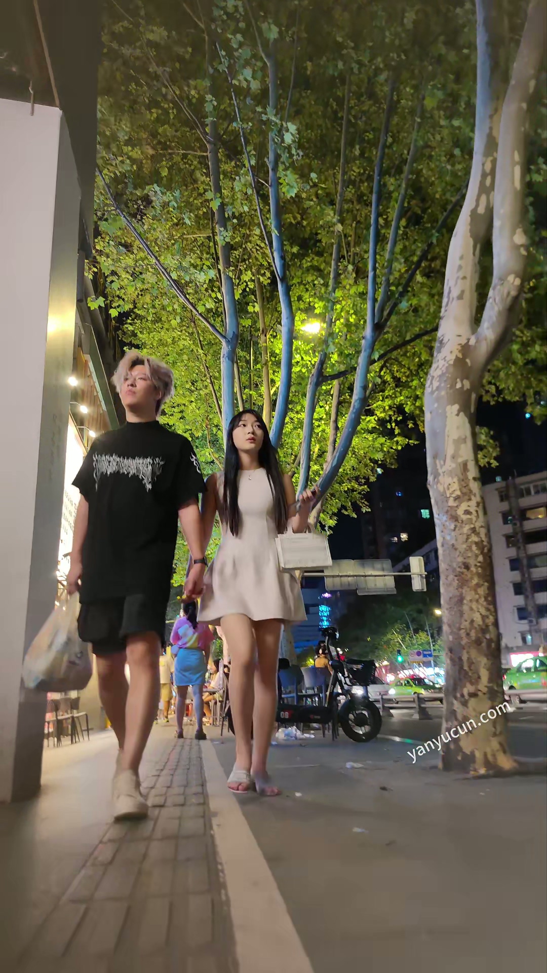 XM403白色连衣裙极品美女和男朋友逛街,白色屁股透明内 ...