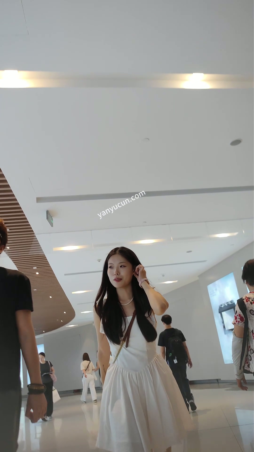 XM432白色连衣裙清纯美女和男朋友逛街,白色窄内